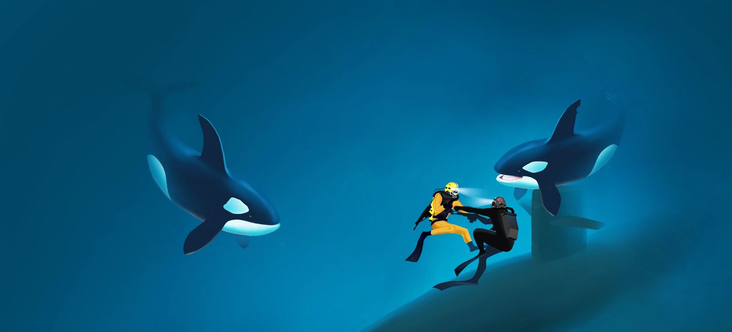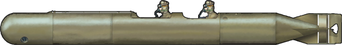 Two Morskoy Spetsnaz divers riding a Sirena two-man torpedo